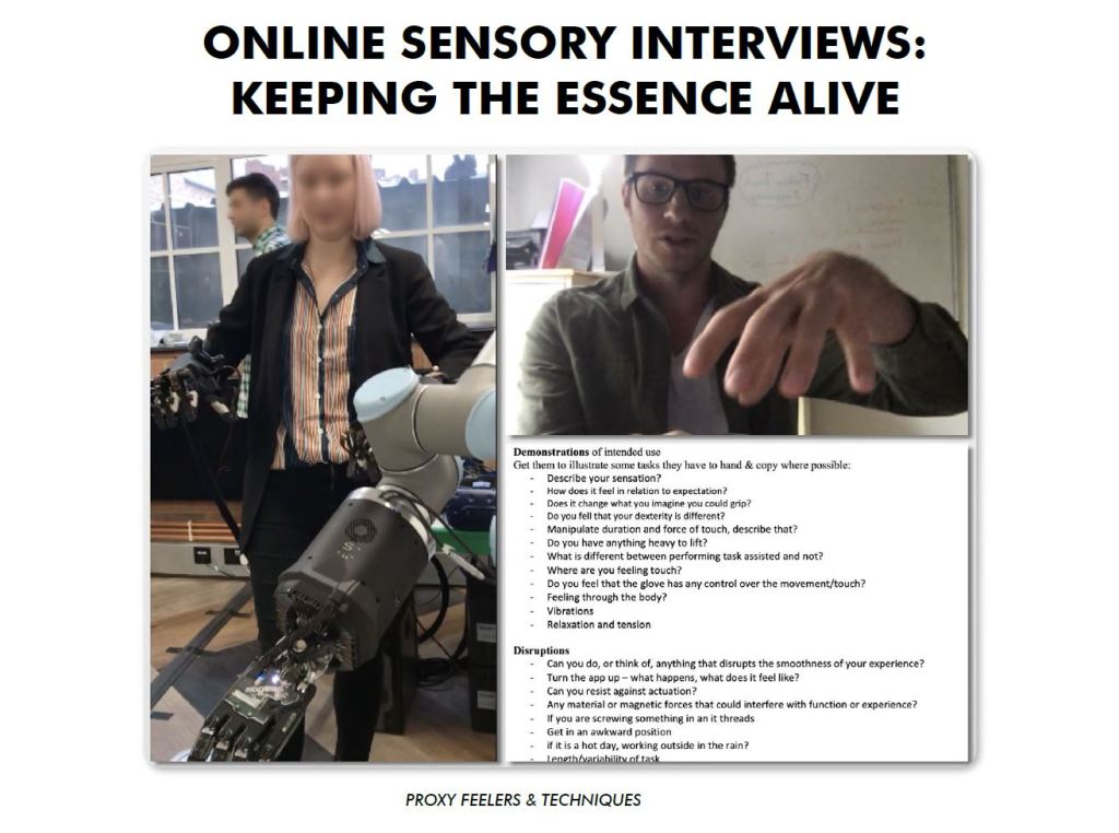 - Online sensory interviews employing techniques that encourage participants to demonstrate touch and create instances where touch actions are disrupted: