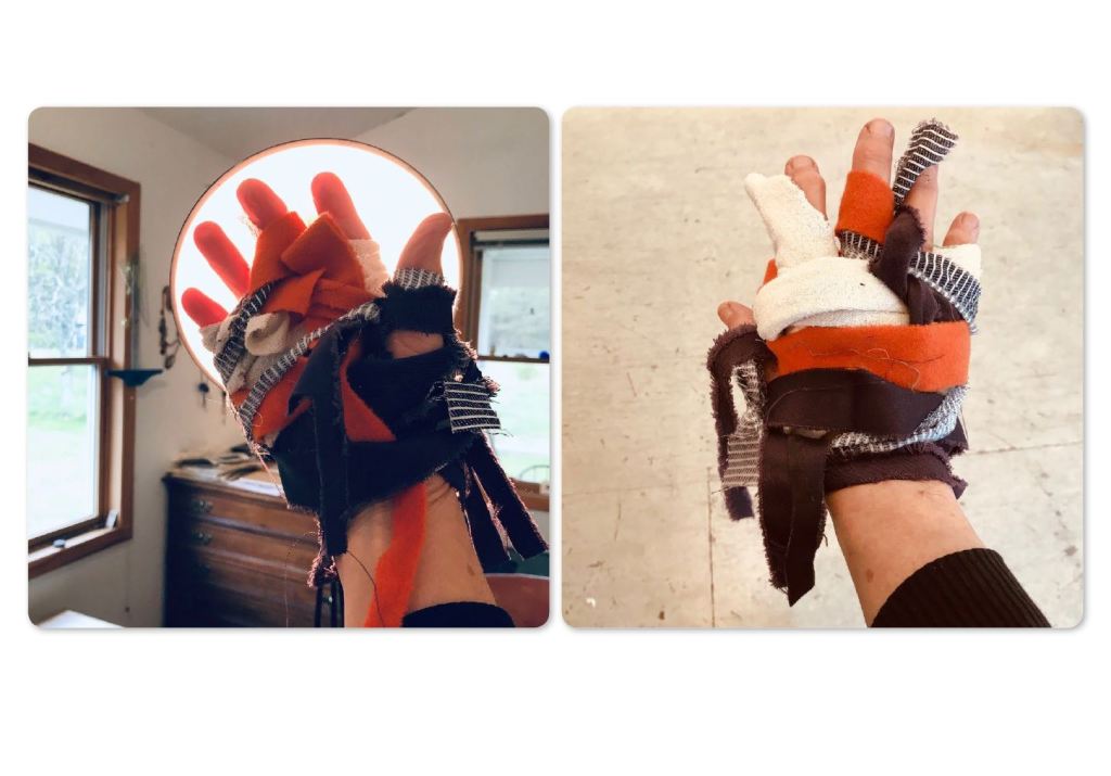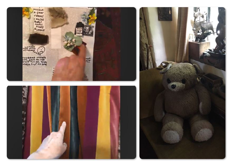 As InTouch’s core methods became unavailable, we had to reorientate our exploration of sensory/tactile environments within a different physical divide between researcher and participant. To stretch our methods to remote (rather than in-situ) contexts, we invited participants to engage with their material surroundings in meaningful ways. To do this, we used alternative means and techniques to help ground participants’ discussions, reflections, practices and speculations within the felt and emplaced dynamics of touch – ‘proxy feelers’. Our proxy-feeler experimentations include: