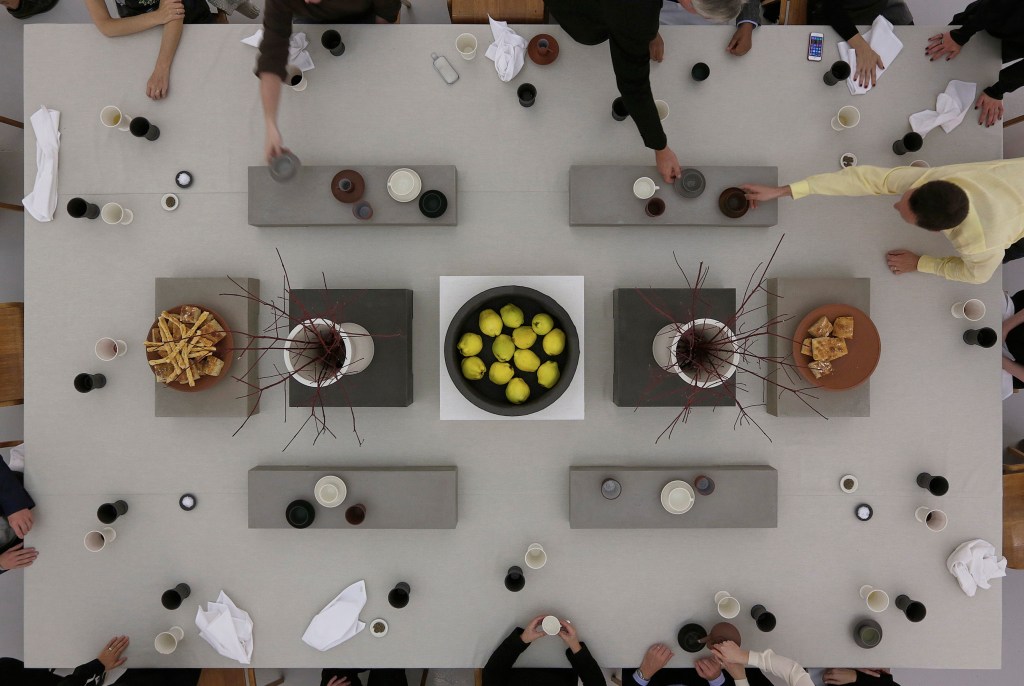 The profound pragmatism of pots underscores the fact that we live our lives and experience ideas and emotions, grounded in a material world. I would argue that pottery is a stealth art. It is an art of the everyday as well as the special occasion. It is omnipresent, operating while we wake up in the morning bleary-eyed through to occasions of grand public ritual. The use of an apparently simple cup and saucer (a ‘humble’ overlooked and unsensational object within the canons of contemporary art – almost anti-art, and a subject for painters to use and make art from) involves a huge range of somatic modalities: an appraisal of two interrelated forms; often graphic treatment or glaze; a consideration of ergonomics; tactile qualities; kinesthetic appreciation; architectural specificity; human scale; site-sensitivity; changing perceptions of heat and cold; temporality; conveyance of taste and smell and, of course, aesthetic discernment. This conveyor for drink and sustenance for the body is an object that we use on a daily basis with friends and family to ‘break bread’, inside domestic space, and also away from the home. And returning to Cardew’s quote at the beginning – this work does not carry a message – it is the message.
