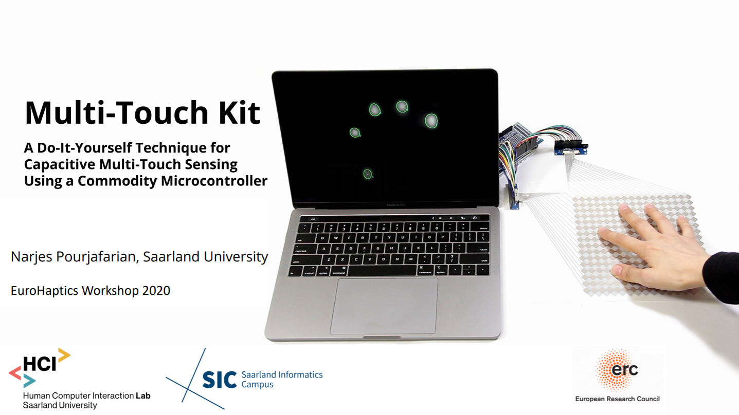 The workshop included activities designed to set the scene for an interdisciplinary collaboration including presentations from Jürgen Steimle on New haptic technologies and interfaces for skin and rich materials, Carey Jewitt on The sociality and sensoriality of touch and Narges Pourjafarian, introducing the Multi-Touch Kit. This provided a grounding for sharing, discussing and mapping points of connection, contradictions, compatibilities.
